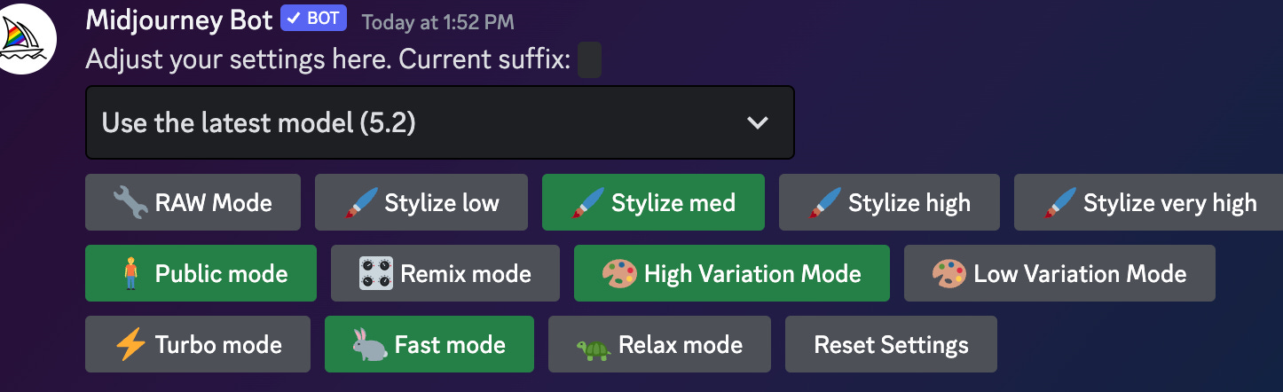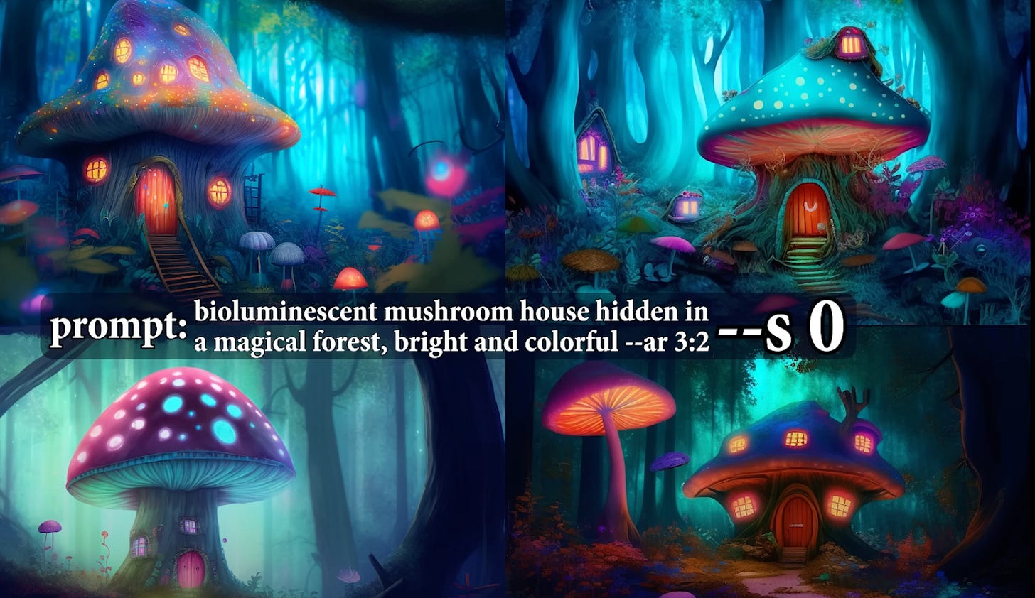 Stylised or -- s values [0-1000] → Low —s values means they will be close to the prompt but less artistic and higher values means they will be more artistic.