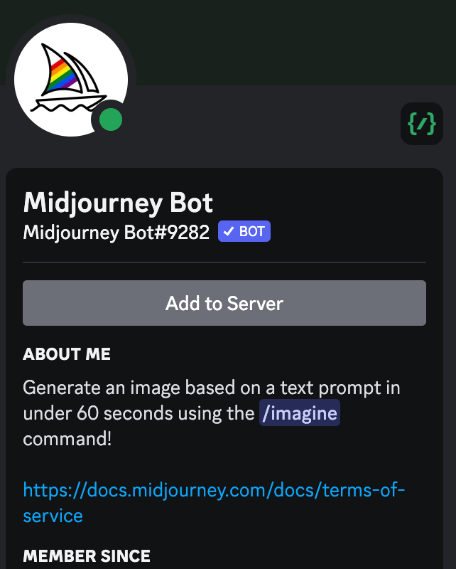 You can invite their bot to your server by clicking on Add to server as shown in screenshot after hovering your mouse on Midjourney bot.